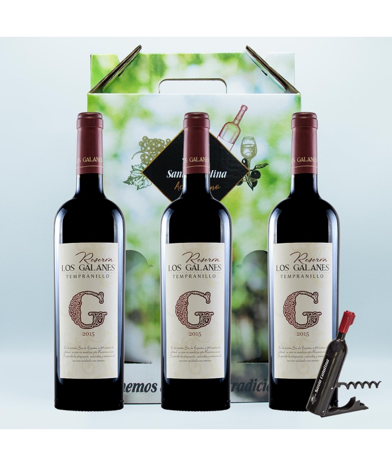 Compra vino tinto Los Galanes Reserva 2018 al mejor precio. Pack de 3 botellas en estuche de vino tinto Los Galanes Reserva 2018 14,5% VOL..